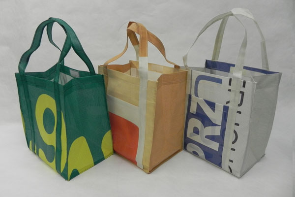 Bardzo wytrzymałe torby ECO z używanej siatki banerowej typu MESH oraz winylu, z materiałów własnych lub powierzonych - m.in. na zakupy, na basen, na plażę, itp.